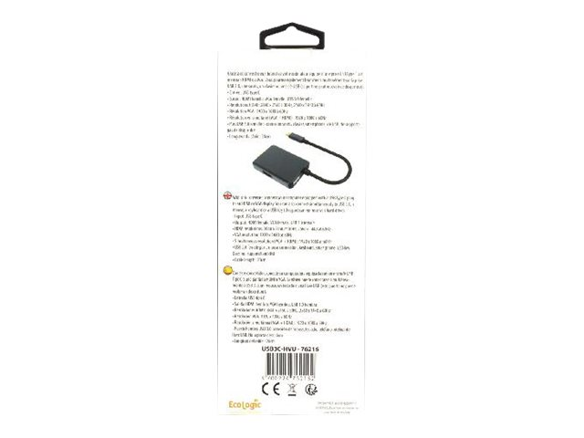 Grâce à ce convertisseur, vous pourrez raccorder votre ordinateur équipé d'une prise USB Type-C sur un écran HDMI ou VGA. Vous pourrez également brancher simultanément sur la prise USB 3.0, une souris, un clavier ou une clé USB.
