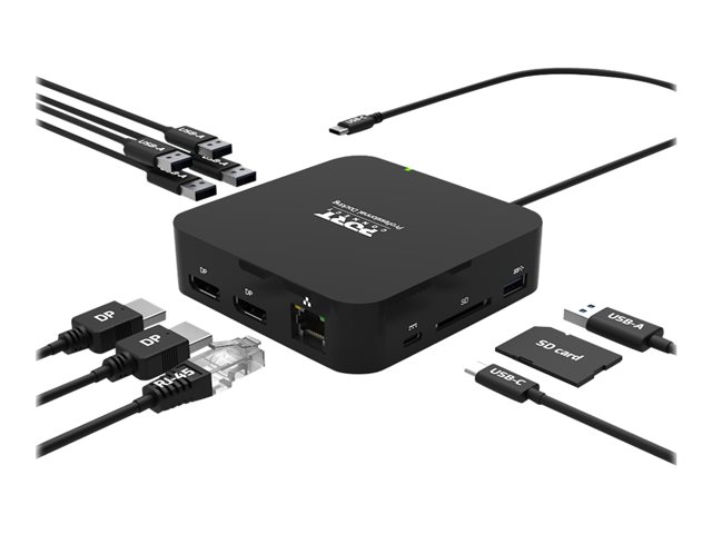 La station d'accueil de voyage PORT Connect USB-C 2X4K augmente la connectivité des ordinateurs portables et fournit jusqu'à 85W de puissance via un réplicateur de d'énergie. Ce dispositif prend en charge jusqu'à 10 périphériques simultanément. Il peut afficher deux écrans supplémentaires à haute résolution via Display Port, jusqu'à 4K Ultra HD. Ses 5 ports USB-A offrent un transfert de données à haut débit (jusqu'à 5Gb/s.) et son port USB-C permet de charger des périphériques et de transférer des données jusqu'à 10Gb/s. La station d'accueil est compatible avec les PC et les Chromebook. Sa taille est adaptée à la mobilité.