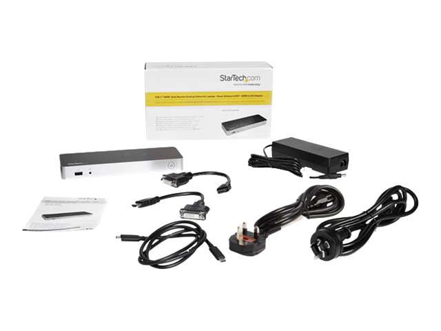 StarTech.com Dual Monitor USB C Docking Station with 60W Power Delivery for Windows Laptops, USB C to HDMI / DVI Dock, USB 3.1 Gen 1 Type C Dock with Charging, Thunderbolt 3 Compatible