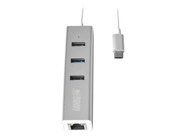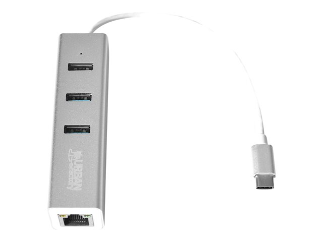Urban Factory Compact USB-C Compact Station: Input USB-C, Output 3x USB 3.0, LAN and micro USB for power delivery