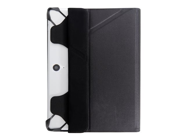 Le portfolio est doté d'un emplacement dédié pour un stylet / stylo, donne accès à tous les connecteurs et appareils photos de la tablette et se positionne en mode chevalet afin de visionner confortablement vos films et séries.