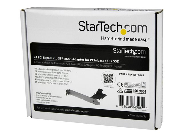 StarTech.com Adaptateur PCI Express x4 vers SFF-8643 pour SSD U.2 PCIe NVMe