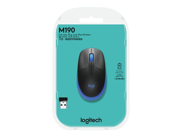 Logitech M190 est une souris sans fil de taille standard dotée d'une conception profilée confortable qui épouse la forme naturelle des mains de taille moyenne et de grande taille. Vous allez travailler sans fil et vous déplacer librement dans un rayon de 10 mètres 1 , sans délai ni interférences. Bénéficiez d'une qualité optimale avec une autonomie de 18 mois 2 , un suivi de précision et un défilement par palier à un prix abordable.