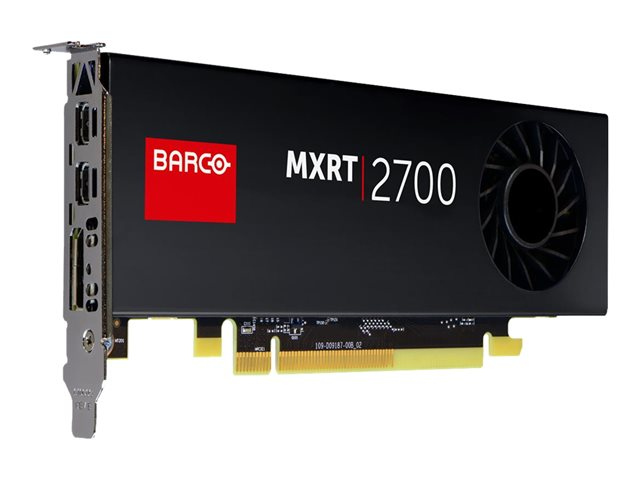 La carte graphique Barco MXRT-2700 offre les fonctionnalités de flux de travail essentielles, la qualité et le support pour garantir que les radiologues peuvent intervenir avec tout leur potentiel. Avec une large mémoire graphique pilotant les sorties DisplayPort, c'est la solution idéale pour ceux qui recherchent une carte graphique professionnelle fiable et économique qui peut s'adapter à presque n'importe quelle station de travail, y compris les petits systèmes à alimentation limitée.