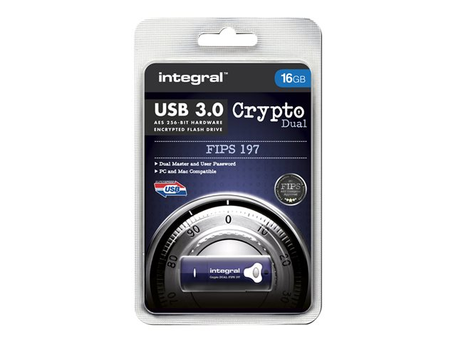 Description du produit Integral Crypto Dual - clé USB - 16 Go Type du Produit Clé USB Type d'Interface USB 3.0 Capacité de stockage 16 Go Algorithme de chiffrement AES 256 bits, FIPS 197 Système d'exploitation requis Apple MacOS X, Microsoft Windows XP / Vista / 7 / 8 / 10 Garantie du fabricant Garantie de 2 ans -