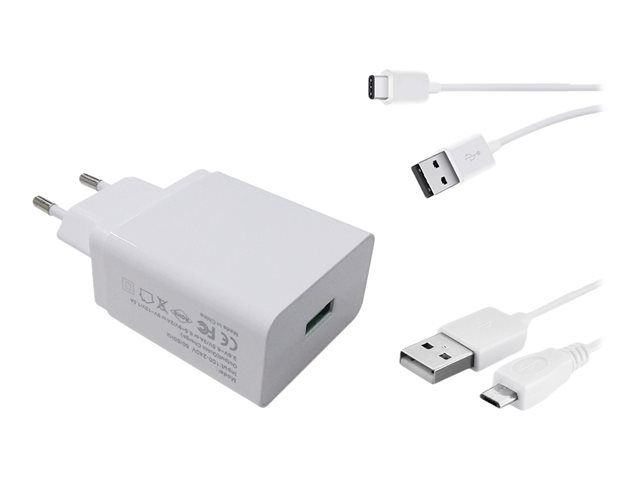 20 Watt - 3 A - QC 3.0 (USB) - sur le câble : Micro-USB, USB-C