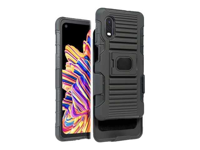 Coque renforcée rigide pour Samsung Galaxy Xcover Pro. Système d'accroche par clip avec le pied support.