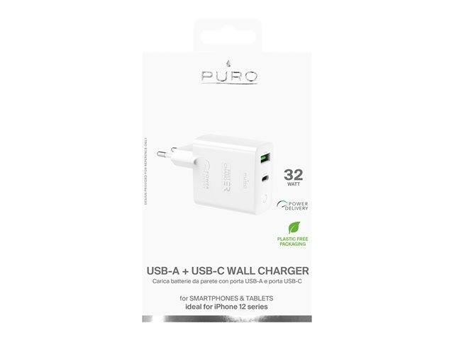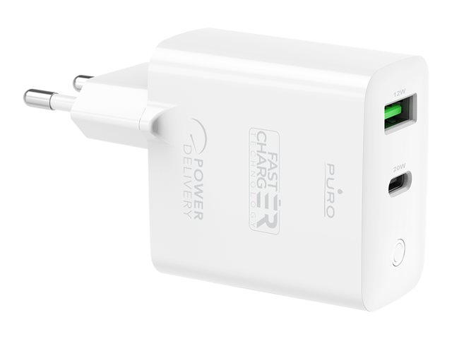 Description du produit Puro adaptateur secteur - USB, 24 pin USB-C - 32 Watt Type de Produit Adaptateur secteur Couleur Blanc Type de prise Total 2: USB, 24 pin USB-C Tension requise CA 110-240 V (50 - 60 Hz) Tension fournie 5 / 9 / 12 V Courant électrique max. 3 A Technologie de charge rapide Fast Charge, Power Delivery Alimentation fournie 32 Watt Détails du dispositif d'alimentation - 24 pin USB-C with Power Delivery - 5 V - 20 W - 3 A