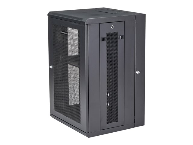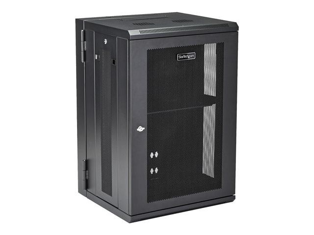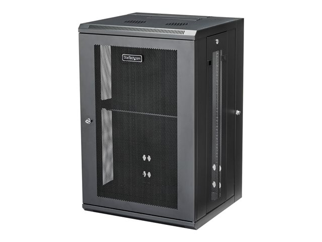 StarTech.com 18U 19" Wall Mount Network Cabinet, 16" Deep Hinged Locking IT Network Switch Depth Enclosure, Assembled Vented Computer Equipment Data Rack with Shelf & Flexible Side Panels