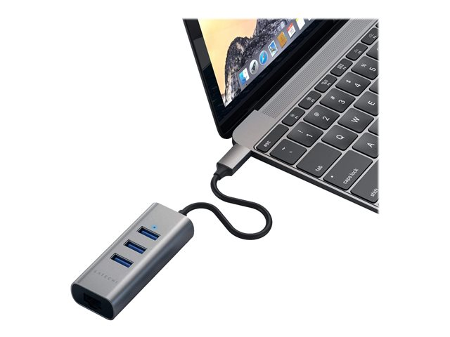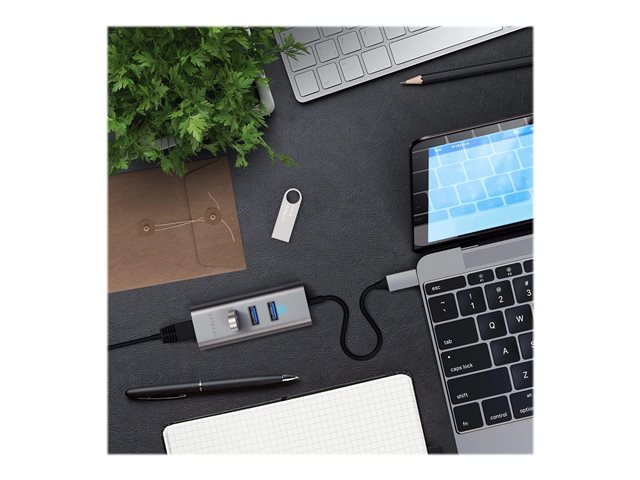 Description du produit Satechi ST-TC2N1USB31AM - concentrateur (hub) - 3 ports Type de périphérique Concentrateur (hub) - 3 ports Sous-type USB Ports 3 x SuperSpeed USB 3.0 + 1 x 10/100/1000 Dimensions (LxPxH) 9.53 cm x 3.18 cm x 2.03 cm Poids 56.7 g Couleur Gris sidéral Garantie du fabricant 1 an de garantie -