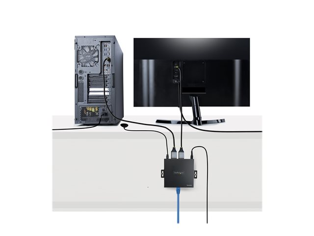 Ce prolongateur HDMI transmet un signal audio vidéo HDMI 4K 60 Hz jusqu'à 70 m sur un câblage Ethernet de catégorie 5e/6.