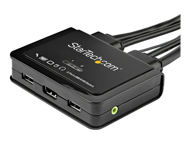 StarTech.com 2 Port HDMI KVM Switch, 4K 60Hz, Compact Dual Port UHD/Ultra HD USB Desktop KVM Switch with Integrated 4ft Cables & Audio, Bus Powered & Remote Switching, MacBook ThinkPad