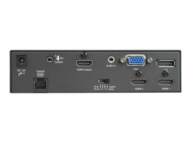 Ce commutateur et convertisseur garantit des opérations sans souci grâce à deux modes de commutation automatique différents : la commutation de détection automatique, qui détecte et sélectionne les périphériques nouvellement connectés, ou la sélection prioritaire, qui permet de choisir le port qui doit être activé par défaut pour la commutation automatique. Ce commutateur et convertisseur est idéal pour les applications d'affichage numérique, où un commutateur automatique peut remplacer une source défaillante équipée d'une entrée secondaire pour éviter les pannes vidéo gênantes.