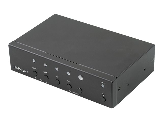 Ce commutateur et convertisseur à multiples entrées vous permet de connecter vos sources audio/vidéo DisplayPort (DP), HDMI et VGA à un écran ou vidéoprojecteur HDMI. Ce commutateur vous permet de commuter automatiquement ou manuellement entre vos sources vidéo et comporte la conversion de signaux intégrée, ce qui élimine le coût et les tracas de devoir utiliser des adaptateurs supplémentaires au nom de la compatibilité.